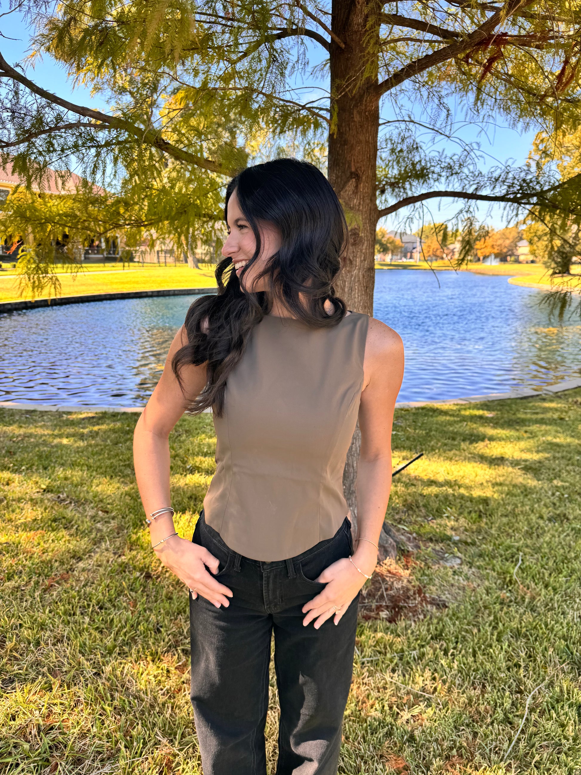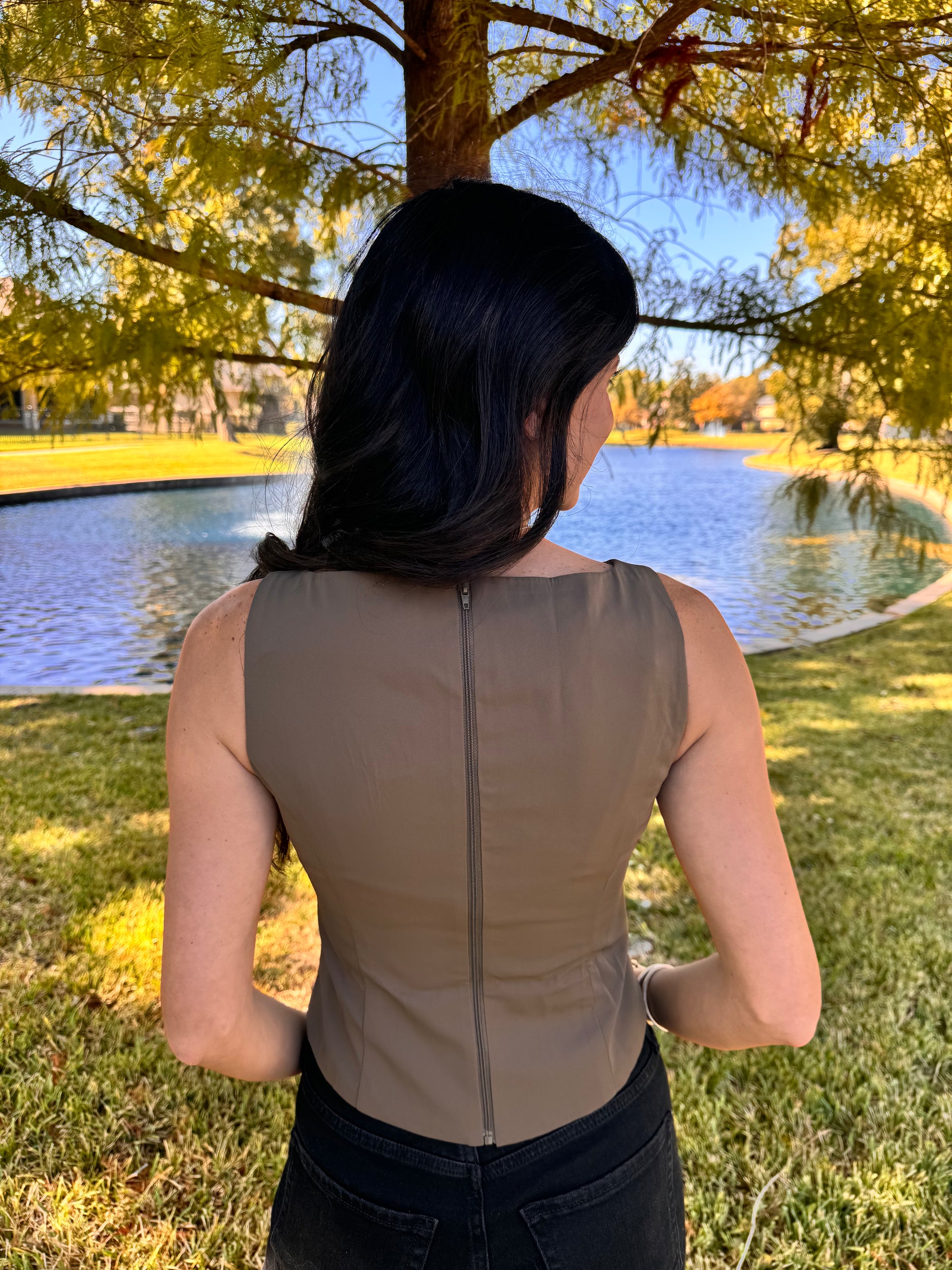 The Marlo Top is a sleek sleeveless design, featuring a flattering fit and a stylish center back zip closure. Perfect for layering or wearing on its own, this timeless top offers endless styling options!
