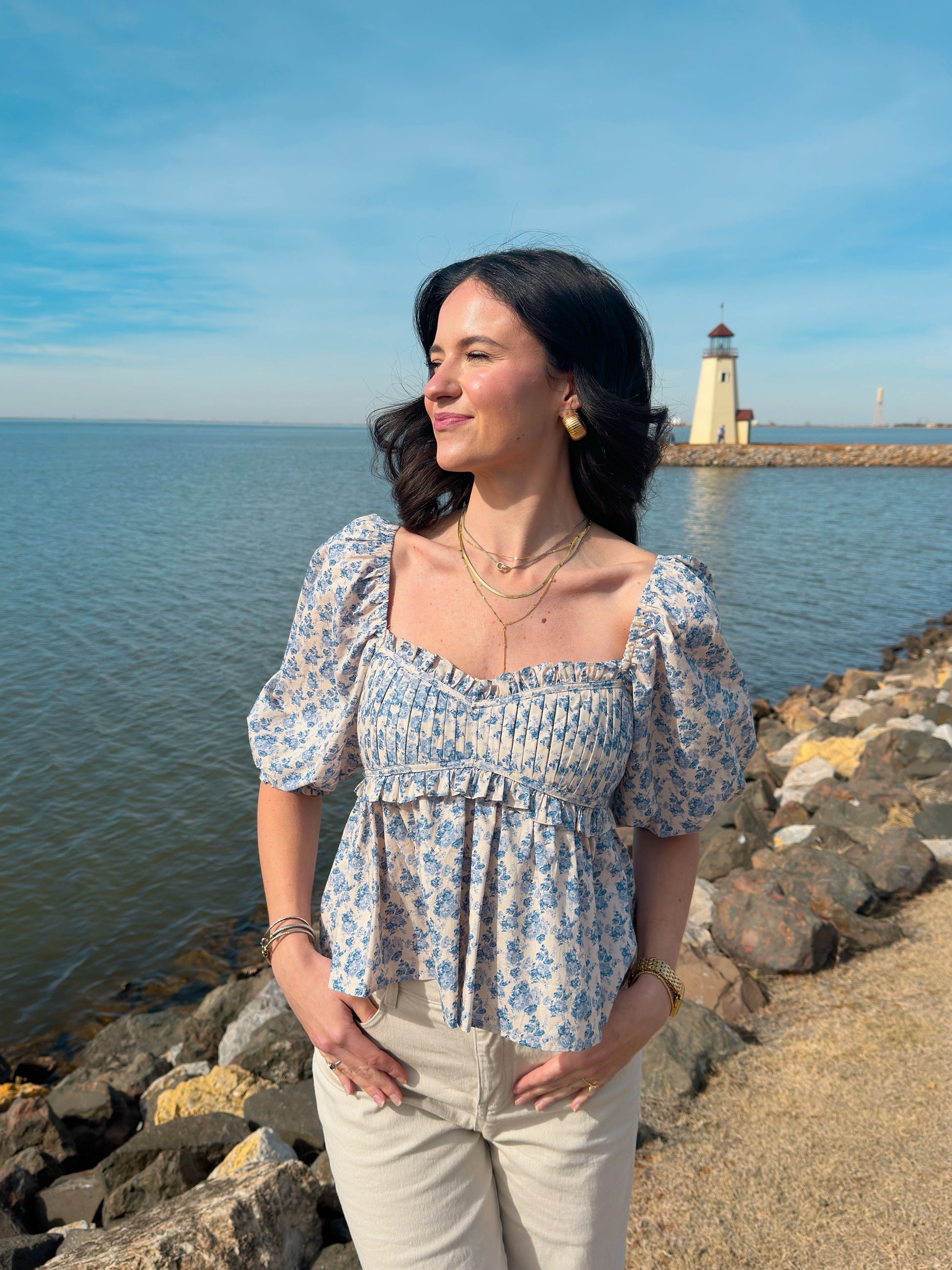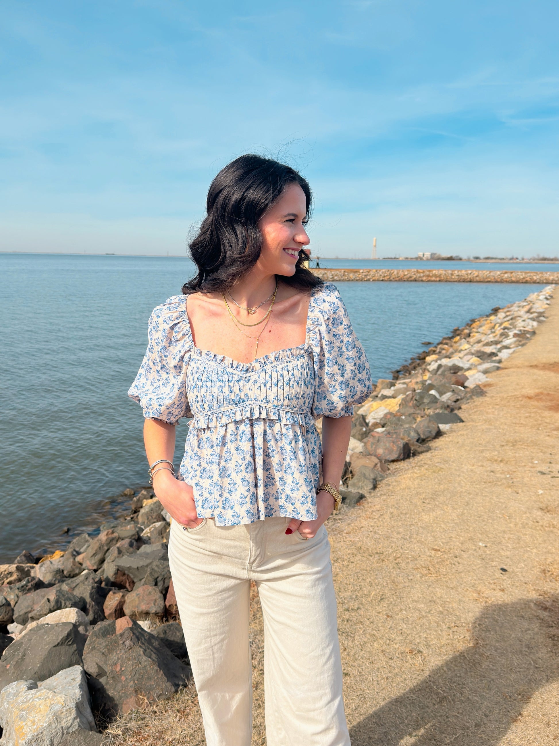 Flirty, feminine, and effortlessly chic! This floral printed babydoll top features a sweetheart square neckline with ruffle trim, a pleated bust, and half puff sleeves for a romantic touch. The smocked back ensures a comfy fit, while the flared hem adds a breezy silhouette. Perfect with denim or a flowy skirt for an easy, stylish look!